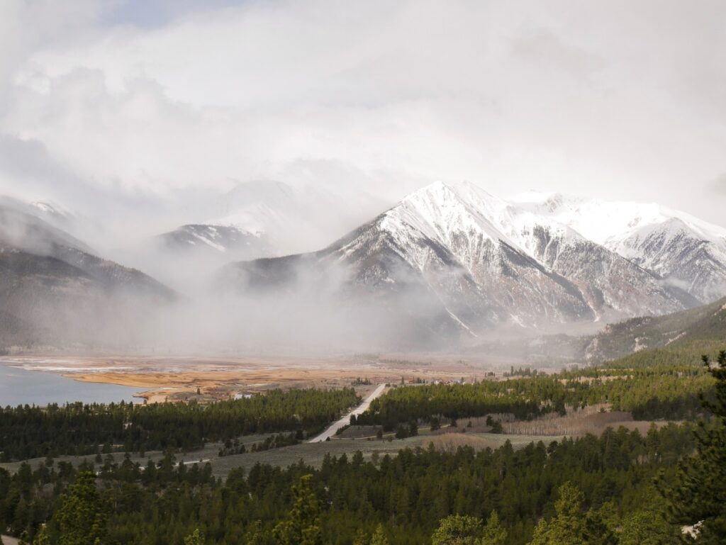 Después de conducir a través de una ventisca de nieve, nuestro camino descendió a un amplio valle y el cielo se aclaró para revelar una de las mejores vistas de Colorado de los ‘catorceañeros’. Es la concentración más alta de montañas de más de catorce mil pies en los 48 inferiores y constituye un espectacular telón de fondo para el pequeño pueblo de Buena Vista.