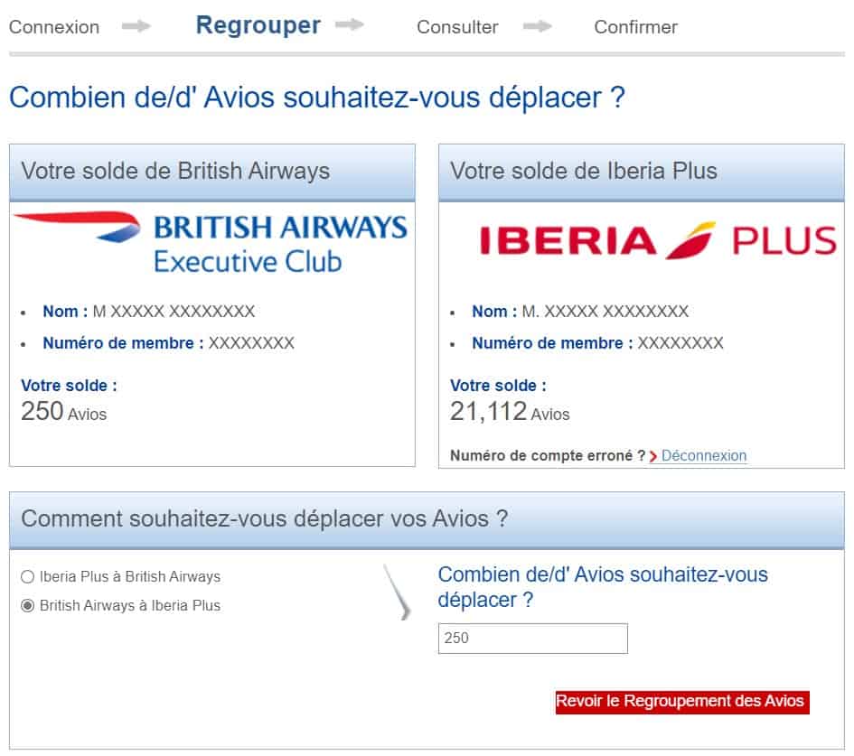 - La consolidación de Avios en una cuenta con fecha de vencimiento anterior reduce la validez de los Avios transferidos.