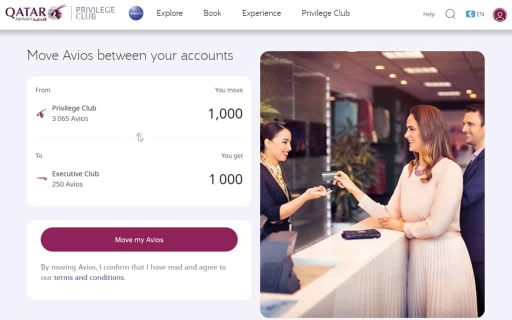 Los Avios acumulados en Qatar Airways Privilege Club sólo son transferibles a British Airways Executive Club desde donde podrán transferirse a otros programas de Avios.