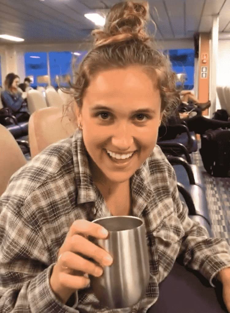 Me desperté con mi amigo de la isla de Vancouver, haciendo estallar mi teléfono porque quería que mi compañero de cuarto y yo fuéramos a acampar en Tofino. Lo siguiente que sé es que tomaremos el ferry de las 9 p. m. más tarde esa noche, ¡lo que convertimos en una hora feliz, por supuesto! Mi hermana nos dejó a mí y al compañero de cuarto en la terminal de ferry de Tsawassen, donde caminamos con nuestra hielera durante el fin de semana. La hielera tenía 2 tazas para acampar y margaritas premezcladas, ¿innovadoras o locas? ¡Te dejaré decidir! Los asistentes de FYI BC Ferries nos vieron y pensaron que era divertido: son los MVP.