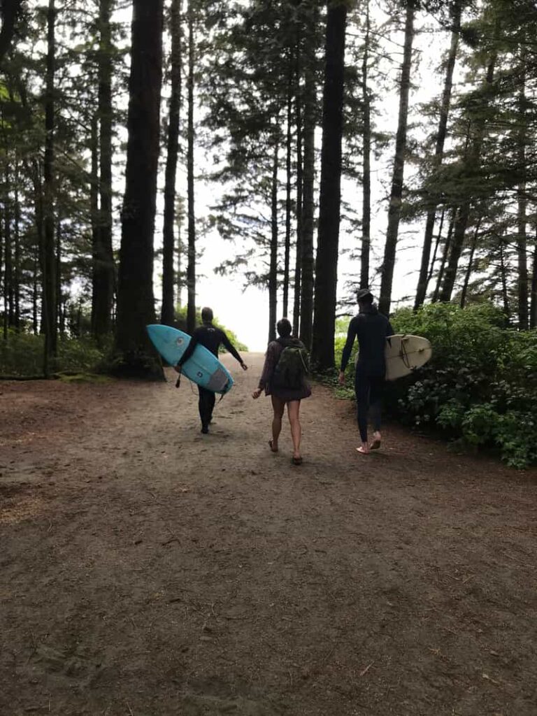 Curiosamente, si planeas acampar en Tofino, hay wi-fi gratis en el centro de la ciudad! Tuve una reunión por Zoom para Pilot y mi compañero de cuarto tuvo que responder algunos correos electrónicos, pero lo hicimos desde la comodidad de nuestra camioneta. Mientras tanto, los chicos decidieron comprar trajes de neopreno y tablas de surf ya que Tofino no estaba alquilando debido al COVID-19. Volvieron con 2 tablas cortas y trajes de neopreno en la mano, con una amplia sonrisa. ¡Era hora de la playa!